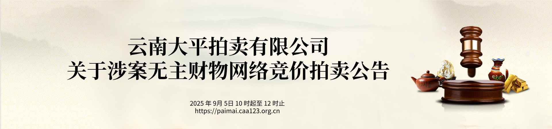 Copyright ? 2015 云南大平拍賣有限公司 版權(quán)所有。備案號(hào): 滇公網(wǎng)安備 53080202000386號(hào),滇ICP備12002892號(hào)-1